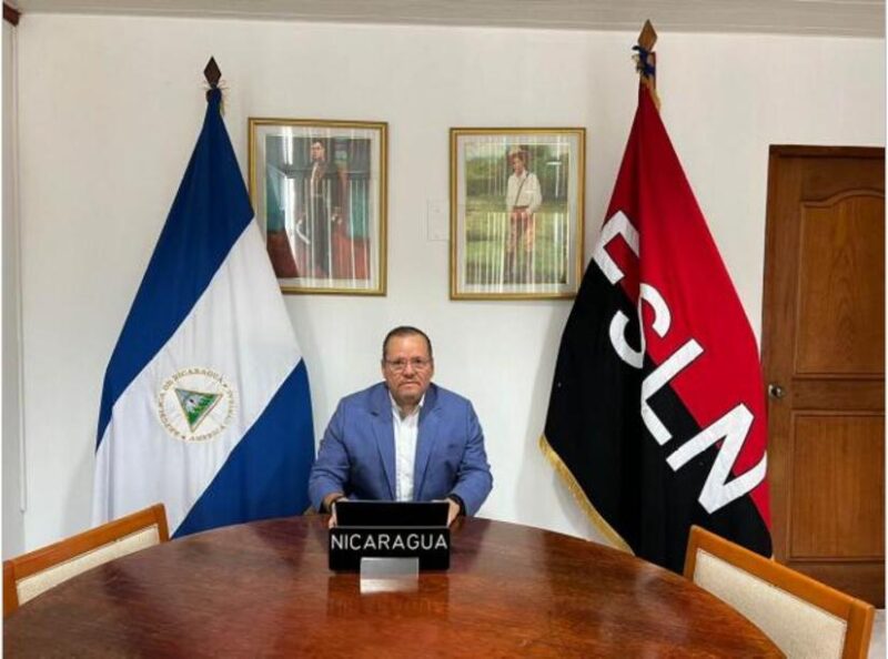 Los Negociadores y Delegados de Nicaragua, son la Compañera Tatiana García, Embajadora de Nicaragua en Alemania (presencial), y el Compañero Javier Gutiérrez, Secretario de Cambio Climático de Presidencia y Viceministro del MARENA (virtual).