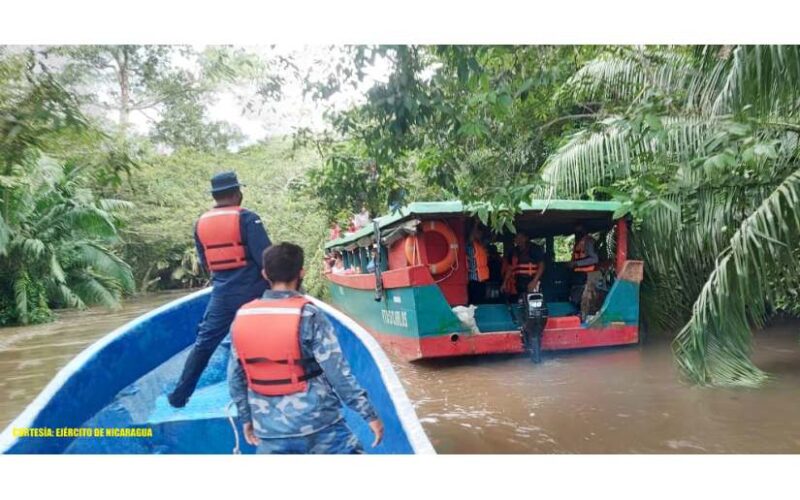 El Ejército de Nicaragua consecuente con el lema de que “Somos el Pueblo mismo uniformado trabajando en su propio beneficio”, el 17 de junio de 2022, a través del Destacamento Naval de Aguas Interiores “Comandante Hilario Sánchez Vásquez”, realizó salvamento y rescate de la embarcación de nombre Reyna del Sur III, con 46 pasajeros a bordo, con destino a la ciudad de San Carlos, la cual quedó a la deriva producto de la colisión con un árbol debido a las fuertes corrientes, sufriendo averías en la parte delantera de la misma y en el motor, siendo remolcada hasta el muelle de Papaturro, municipio de San Carlos, departamento de Río San Juan.