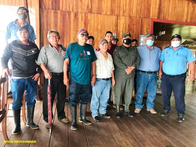 El Ejército de Nicaragua consecuente con el lema de que “Somos el Pueblo mismo uniformado trabajando en su propio beneficio”, el 29 de junio de 2022, a través del jefe del Destacamento Militar Sur, Coronel Inf. DEM Manuel Antonio Mayorga, participó en reunión con productores y ganaderos en la comunidad de Boca de Sábalo, municipio de El Castillo, departamento de Río San Juan, con el objetivo de coordinar acciones que continúen proporcionando un ambiente de seguridad y estabilidad en la zona.