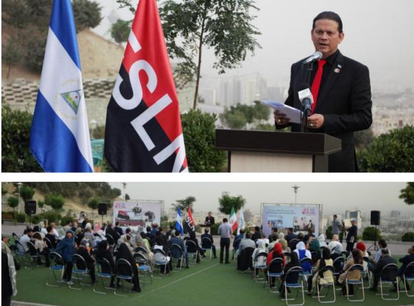 El acto fue en el Parque Parvaz de Teherán, haciendo extensivos los saludos de parte de nuestro Presidente-Comandante Daniel Ortega y la Vicepresidenta, Compañera Rosario Murillo.