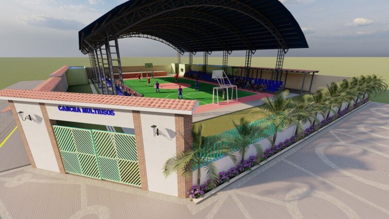 El proyecto se desarrollará en dos etapas que conllevan la construcción de fachada y cerra-miento perimetral, graderías, techado, tari-ma, vestidores, sanitarios, iluminación, ins-talación de pizarra electrónica, andenes y pintura en general.