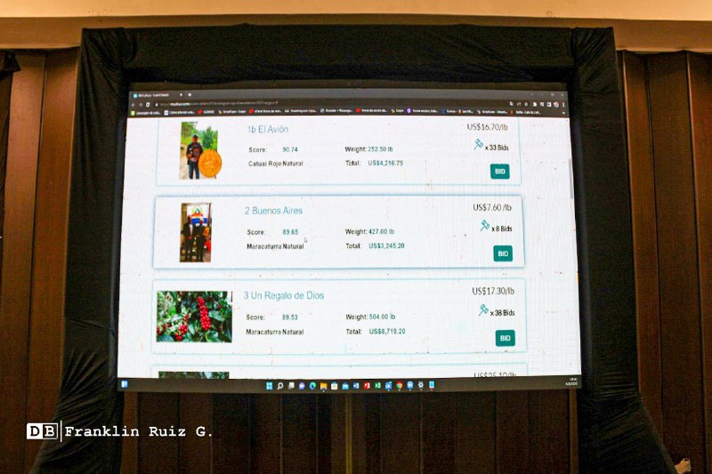 El café producido por la Finca «El Avión», lideró las ventas en la subasta internacional, llegando a alcanzar un precio por libra de $25.20 es decir $2,520 dólares, el quintal.