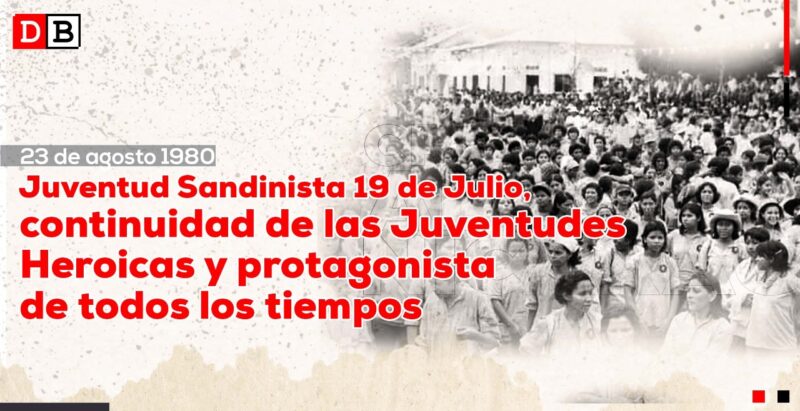 El 23 de agosto de 1979, hace 43 años, se fundó la Juventud Sandinista 19 de Julio, organización vanguardia en la defensa de la Revolución Popular Sandinista. Esta organización incorporó masivamente a los jóvenes que, de manera entusiasta y comprometida, asumieron las tareas de la transformación revolucionaria en beneficio del pueblo y en sus derechos como jóvenes.