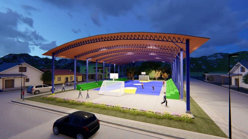 Este proyecto comprende la construcción de cancha para las disciplinas de baloncesto, voleibol y fútbol sala, graderías laterales, instalación de tableros, aros, iluminación y pintura en general.