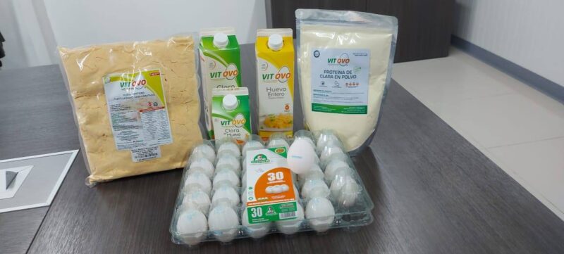 Procesan su producción en huevo pausterizado líquido con una duración para uso de 6 meses en congelación y huevos deshidratados en polvo, los cuales tienen 2 años de caducidad.