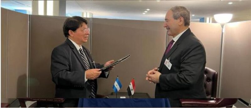 La delegación de Nicaragua encabezada por el compañero Canciller Denis Moncada Colindres, firmó un Acuerdo entre el Gobierno con el Gobierno de la República Árabe Siria sobre la Exención Recíproca de Visados para los Pasaportes Diplomáticos, Oficiales, Especiales y de Servicio.