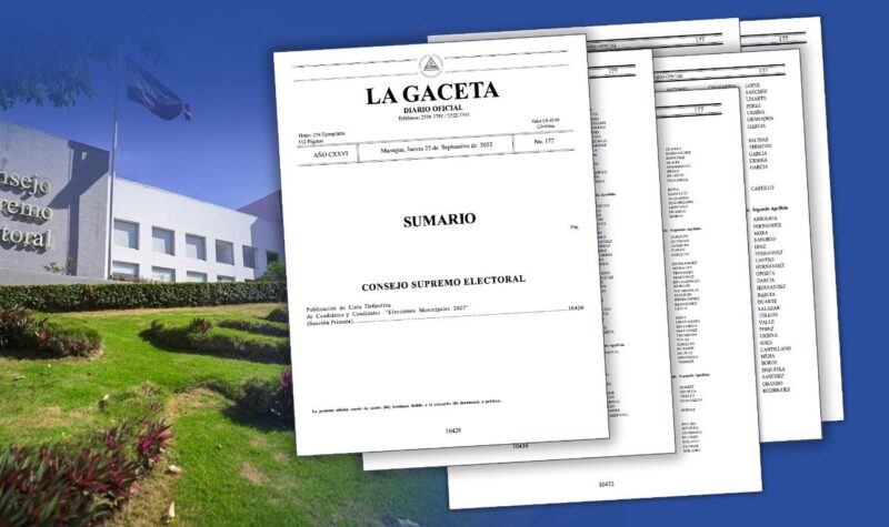 El Consejo Supremo Electoral (CSE) de Nicaragua, este 22 de septiembre, ha efectuado a través de La Gaceta, Diario Oficial, la publicación definitiva de candidatos y candidatas a Alcaldes o Alcaldesas, Vicealcaldes o Vicealcaldesas y Miembros de los Concejos Municipales de los 153 Municipio del país.