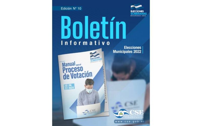 A continuación, compartimos el Boletín Informativo número 10 sobre las Elecciones Soberanas 2022, emitido por el Consejo Supremo Electoral.