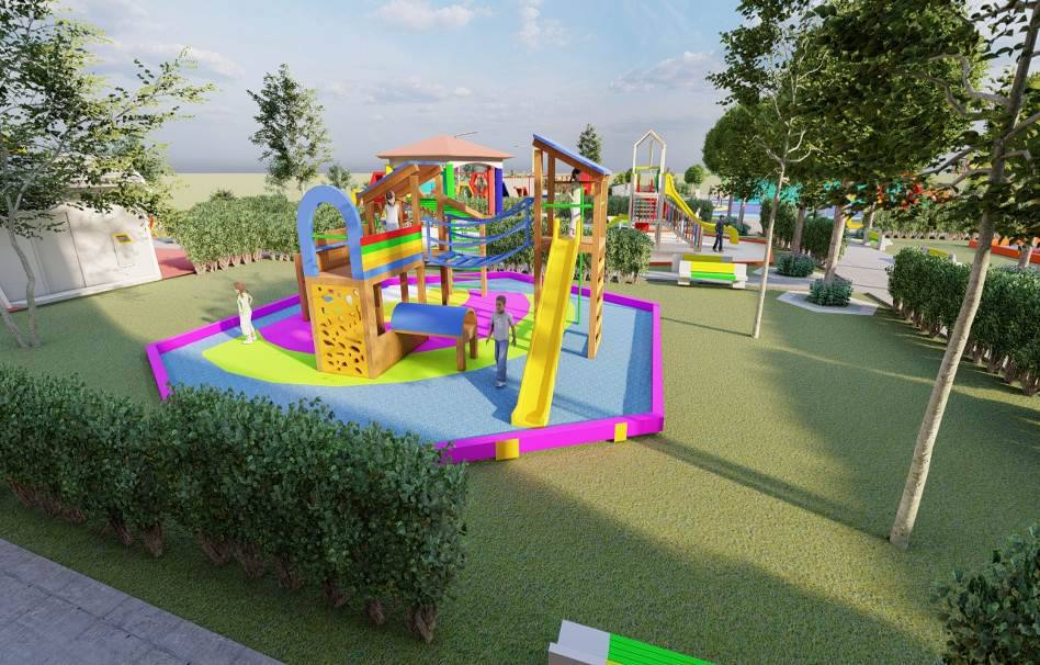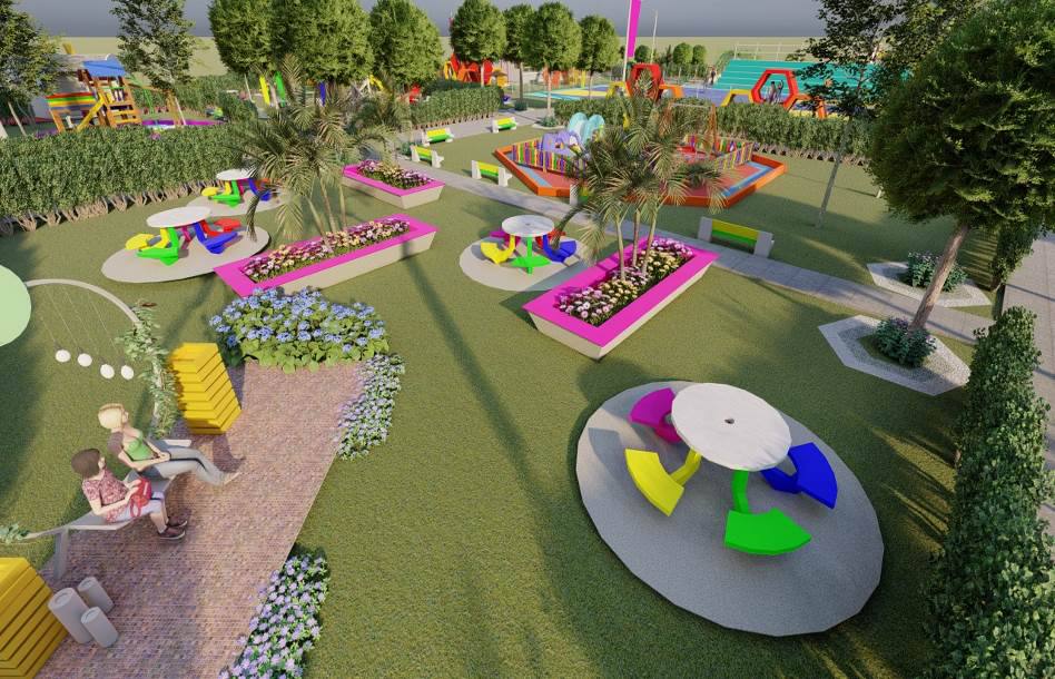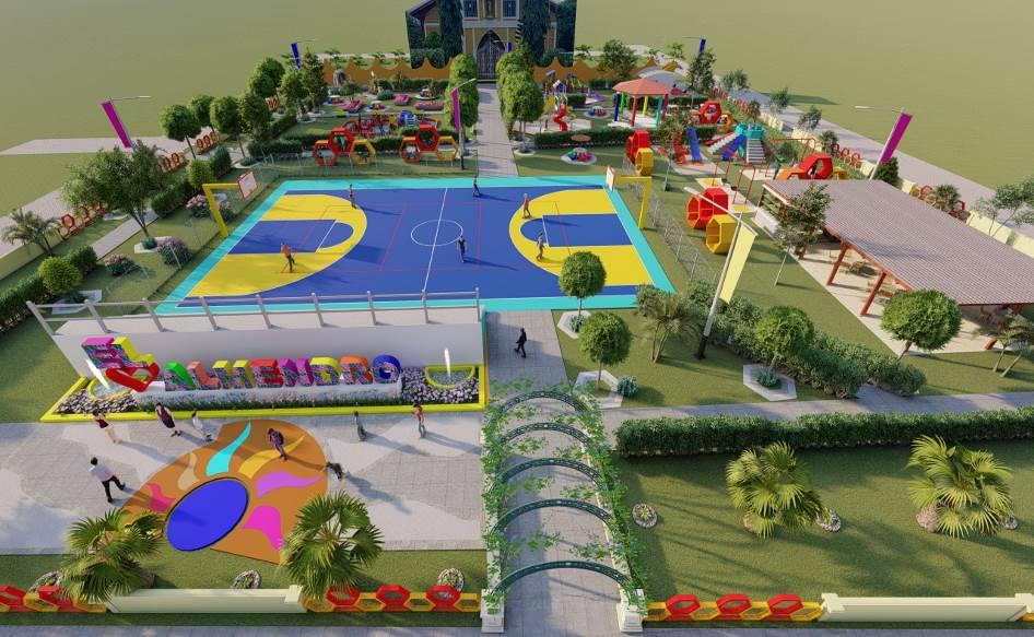 El proyecto conllevará mejoras de fachada, acceso principal, plaza y construcción de zona selfies, 2 quioscos, mejora de cancha con graderías, instalación de nuevos juegos infantiles, luminarias, bancas, mesas y sillas, así como, aplicación de pintura y ornamentación en general.