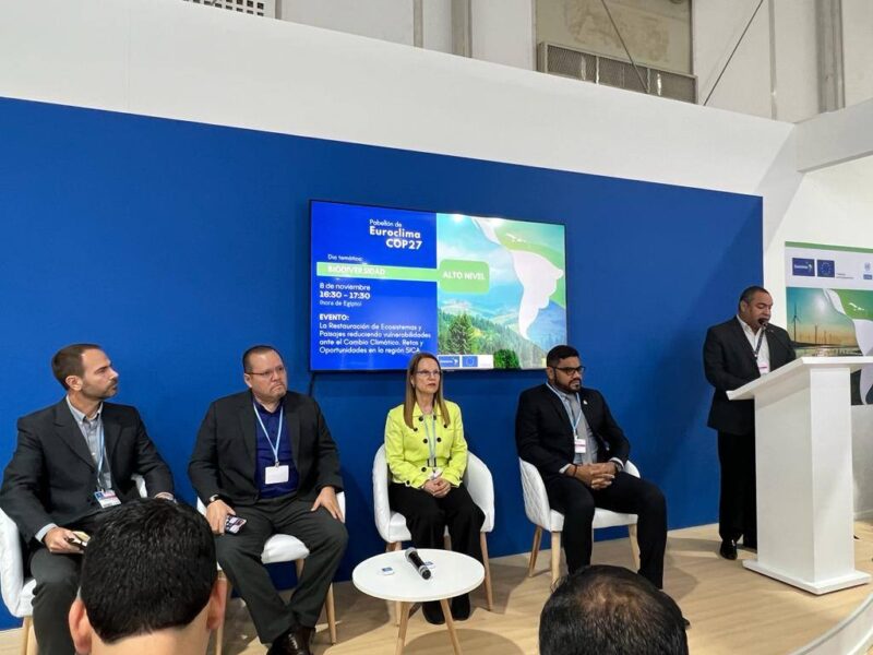 La Delegación de Nicaragua en representación del Compañero Javier Gutiérrez, participó como panelista en las sesiones organizadas por FAO y EUROCLIMA+, sobre “La restauración de Ecosistemas de la Región SICA” y “Creación de capacidades para cumplir con las metas de Cambio Climático en el sector de agricultura y usos de la tierra”.
