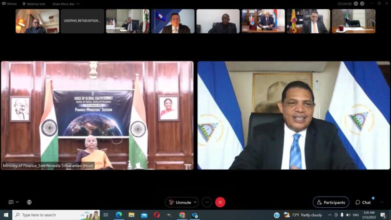 El Gobierno de Reconciliación y Unidad Nacional, participó en la Sesión de Ministros de Finanzas, de la “Cumbre Voz del Sur”, organizada por el Gobierno de La India.