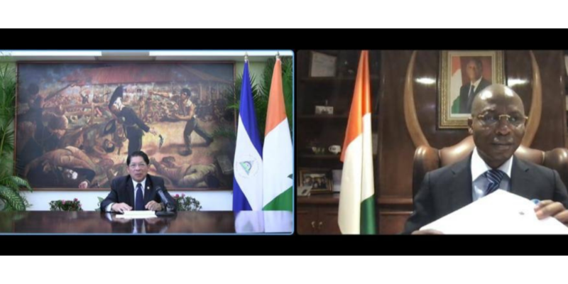 El Canciller Denis Moncada recibió en ceremonia virtual, las Copias de Estilo del Señor Ly Djerou Robert, para que sea acreditado como Embajador Extraordinario y Plenipotenciario de la República de Costa de Marfil, concurrente ante Nicaragua desde México.