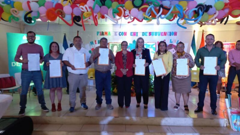 La firma se llevó a cabo en la Casa de Cultura de San Marcos donde participaron técnicos y la Ministra de la Familia, Johana Flores junto a las autoridades municipales.