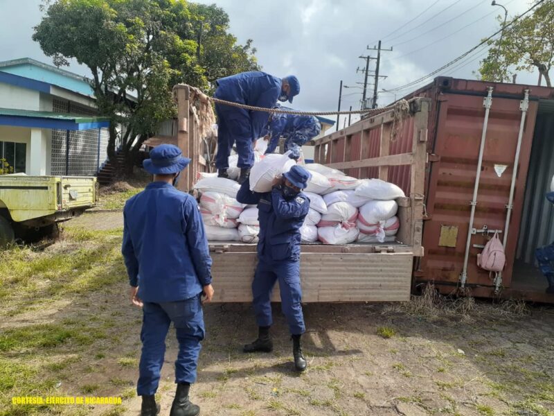 El Ejército de Nicaragua informó del descargue de 482 paquetes alimenticios en la bodega del Instituto Nacional Tecnológico (INATEC), del municipio de Bluefields.