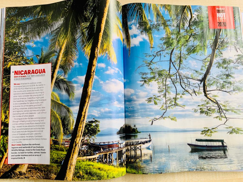 La Revista Wanderlust ha publicado en su versión impresa y sitio web, múltiples artículos sobre nuestro País, incluyendo Nicaragua en su Hot List de 2020; como Destino Amigable con el Medio Ambiental, a Ometepe entre los 200 lugares por conocer, entre otros; y en Enero seleccionó una foto del Volcán Masaya entre las diez mejores en Categoría Paisaje en su competencia “Fotos de Viaje del Año”.