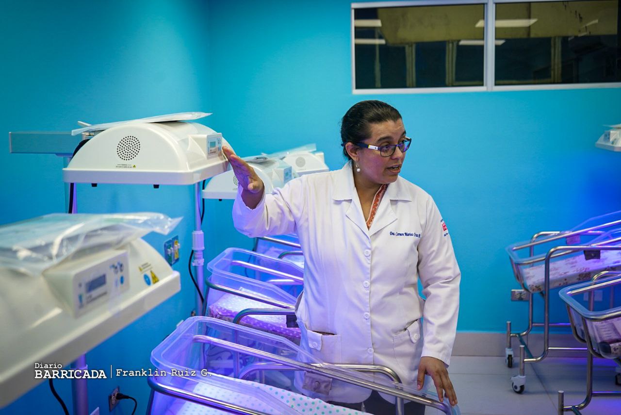 “El área que se ha rehabilitado es de 228 metros, incluye la construcción de un pasillo que comunica el área de neonato con sala de operaciones, además, de áreas de climatización, se ha hecho rehabilitación de sistema eléctrico, construcción de paredes internas, rehabilitación de muebles, y accesorios de servicios higiénicos” informó la compañera Carmen Cruz, Doctora del hospital Bertha Calderón.
