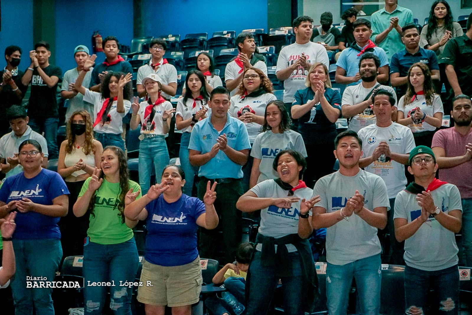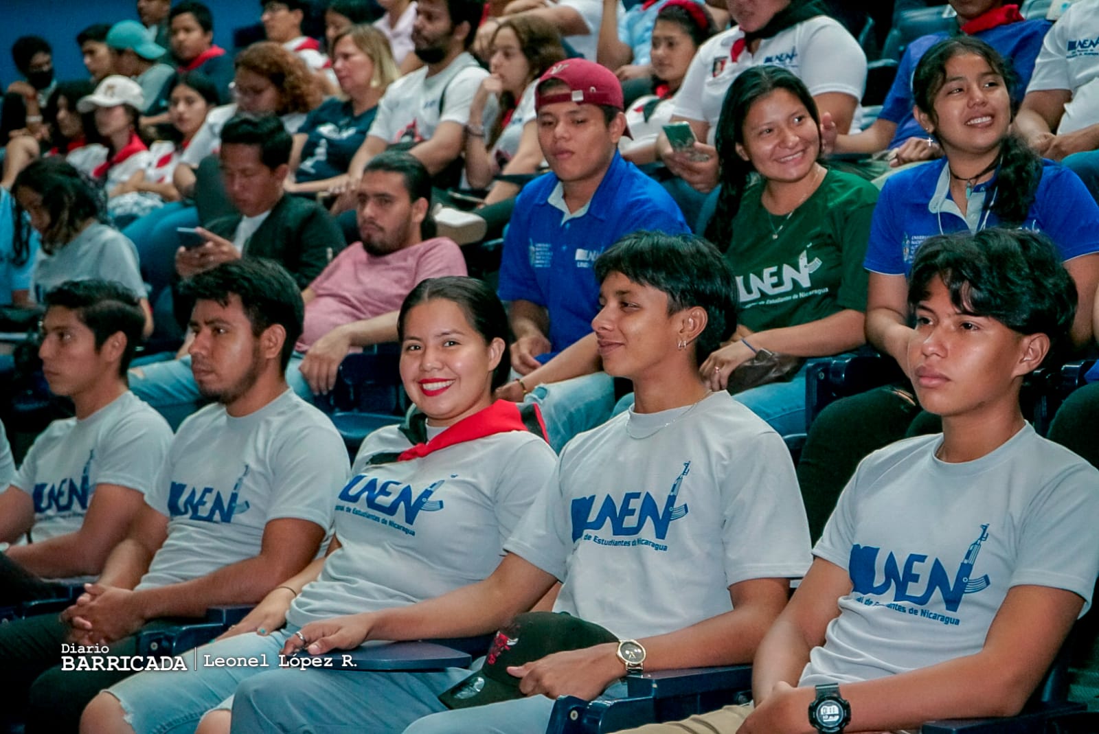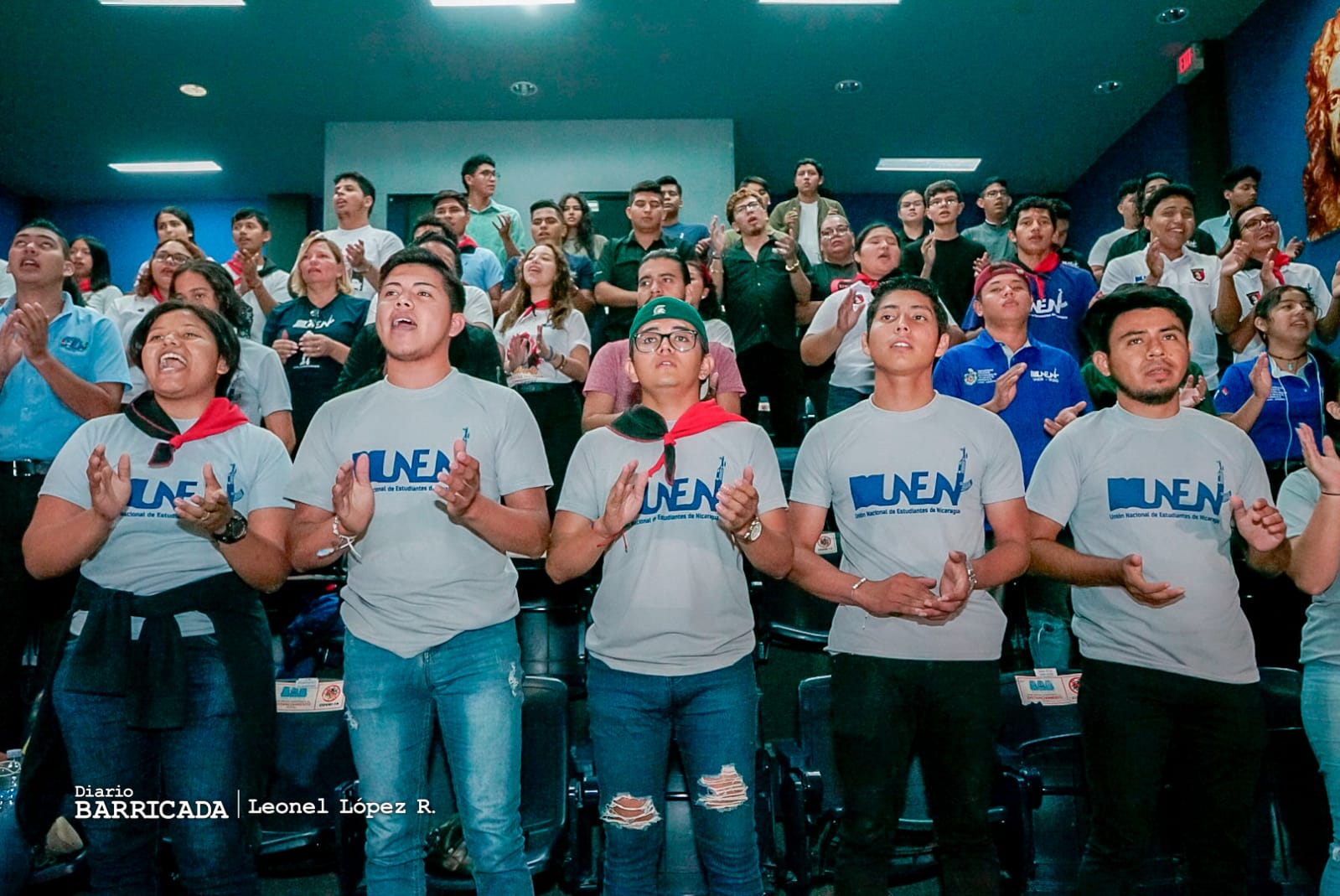 Janely Núñez, Vicepresidenta de la Unión Nacional de Estudiantes de Nicaragua (UNEN) reafirmó el compromiso que tienen como juventud y estudiantes universitarios a las labores ordenadas por el Gobierno, y a nunca declinar frente a sus ideales, así mismo mencionó los logros que se han mantenido gracias a la Revolución, como el 6% constitucional que tienen todas las universidades publicas