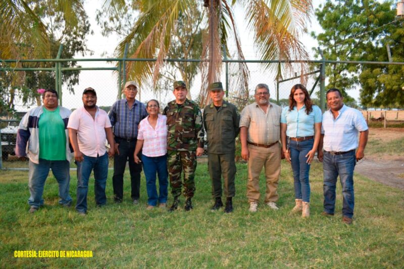 El Ejército de Nicaragua consecuente con el lema de que “Somos el Pueblo mismo uniformado trabajando en su propio beneficio”, el 27 de abril de 2023, a través del jefe de la Brigada de Infantería Mecanizada “General Augusto C. Sandino” y el jefe de la Escuela Nacional de Sargentos “Sargento Andrés Castro”, participaron en reunión con productores de la Península de Chiltepe, municipio de Mateare, departamento de Managua, con el objetivo de coordinar acciones que garanticen un ambiente de seguridad, estabilidad y paz en las zonas rurales del municipio.