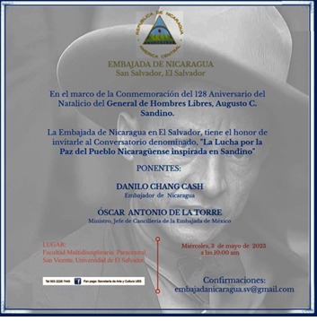 La Embajada de Nicaragua en El Salvador, en representación del Pueblo y Gobierno de Reconciliación y Unidad Nacional en conjunto con la Universidad de El Salvador, recinto del municipio de San Vicente, realizaron la exposición de galerías fotográficas y un conversatorio con estudiantes y docentes de las diferentes disciplinas académicas de dicha Universidad, sobre la lucha del General Sandino y lo que representa para el Pueblo Nicaragüense.