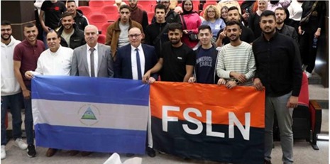 Posteriormente, el Embajador Morales, sostuvo un encuentro con un grupo de estudiantes de literatura, y conversaron sobre las relaciones de amistad entre Nicaragua y Palestina y sobre el Proyecto Revolucionario del General Sandino, la fundación del FSLN, la Victoria de la Revolución Po-pular Sandinista y los Logros del Gobierno de Reconciliación y Unidad Nacional.