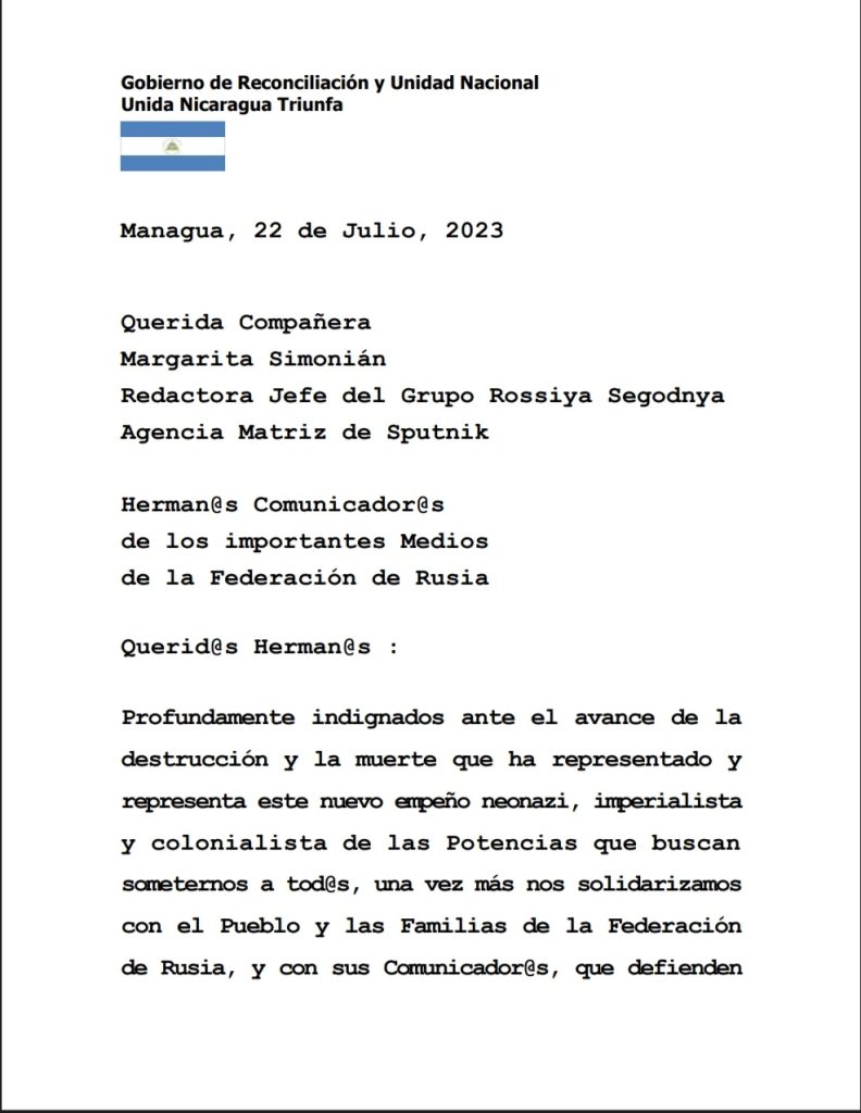 Como Pueblos Hermanos y como Trabajador@s de la Comunicación, saludamos a ustedes solidariamente, a los Familiares y Amig@s de los Compañeros Konstantín Mijalchevski, Román Polskov, Dmitri Shikov, asaltados, heridos, y del Compañero Rostislav Zhuravliov, Corresponsal Militar dolorosamente fallecido, asesinado en un bombardeo ucraniano con municiones de racimo, y todos en cumplimiento de su Sagrado Deber de contar la Realidad.