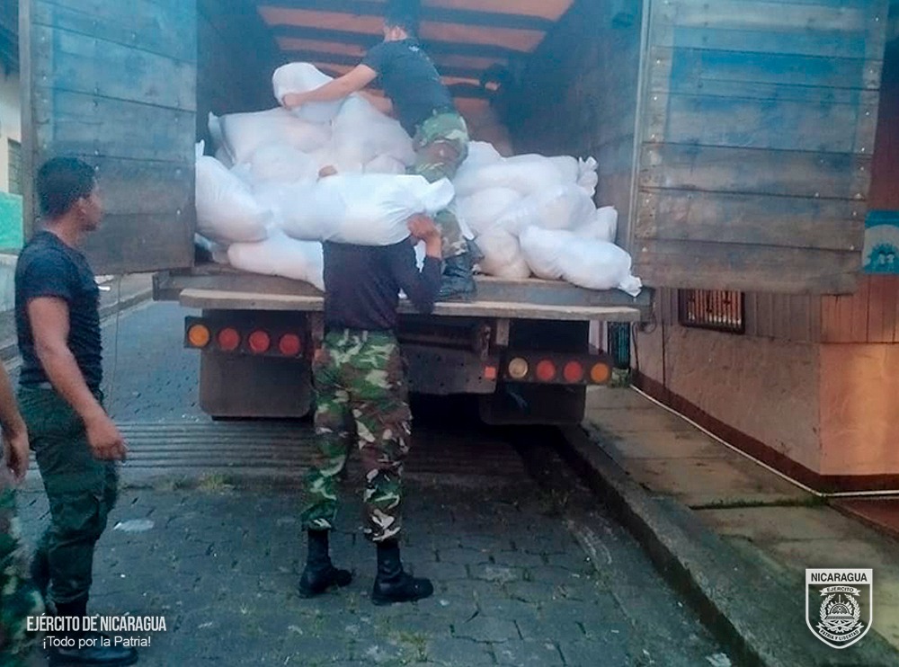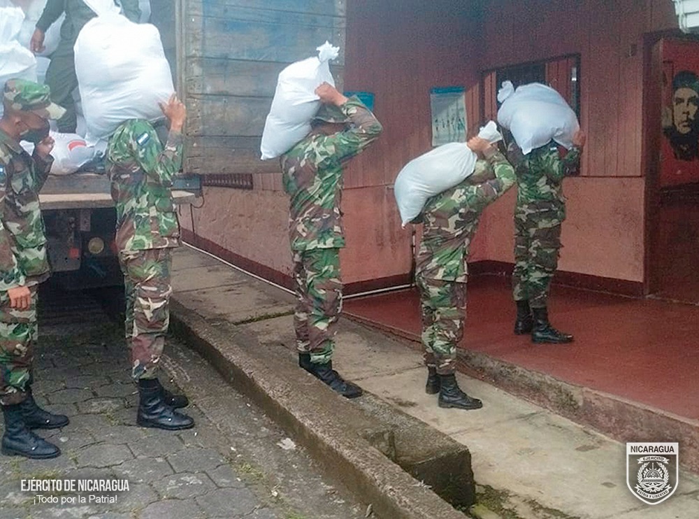 El Ejército de Nicaragua consecuente con el lema de que “Somos el Pueblo mismo uniformado trabajando en su propio beneficio”, el 13 de noviembre de 2023, a través del Destacamento Militar Sur, en coordinación con la alcaldía del municipio de San Carlos, departamento de Río San Juan, realizó el descargue de 900 paquetes alimenticios, en el auditorio “Gabriel Aguirre Marín”, con el objetivo de abastecer a familias en emergencia social