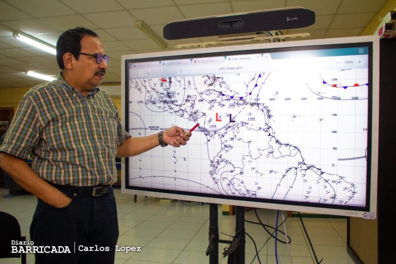 A pesar de la presencia de un sistema de bajas presiones en el Mar Caribe, el ing. Marcio Baca, director de INETER, nos explicó que las posibilidades de que se produzca un fenómeno potencial son bajas.