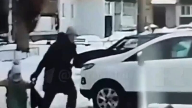 Un video grabado por cámaras de vigilancia captó el momento en el que el individuo agarró de la mano a la niña de 7 años mientras caminaba con su hermano en un patio de edificios residenciales de la ciudad de Sterlitamak e intenta huir con ella. I