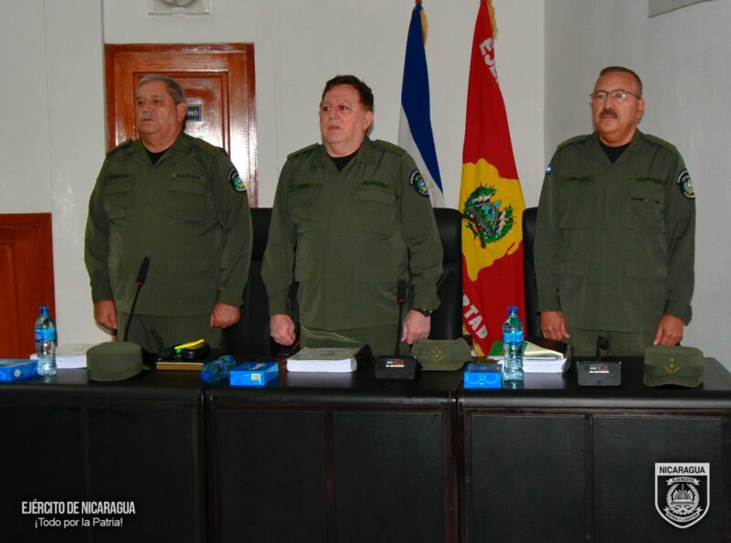 El Ejército de Nicaragua consecuente con el lema de que “Somos el Pueblo mismo uniformado trabajando en su propio beneficio”, el 15 y 16 de febrero de 2024, el Comandante en Jefe del Ejército de Nicaragua, General de Ejército Julio César Avilés Castillo, acompañado por el Jefe del Estado Mayor General, Mayor General Bayardo Ramón Rodríguez Ruiz y el Inspector General, Mayor General Marvin Elías Corrales Rodríguez, realizó reunión de trabajo con jefes de direcciones del Estado Mayor General, jefes de unidades militares y cadena de mando.