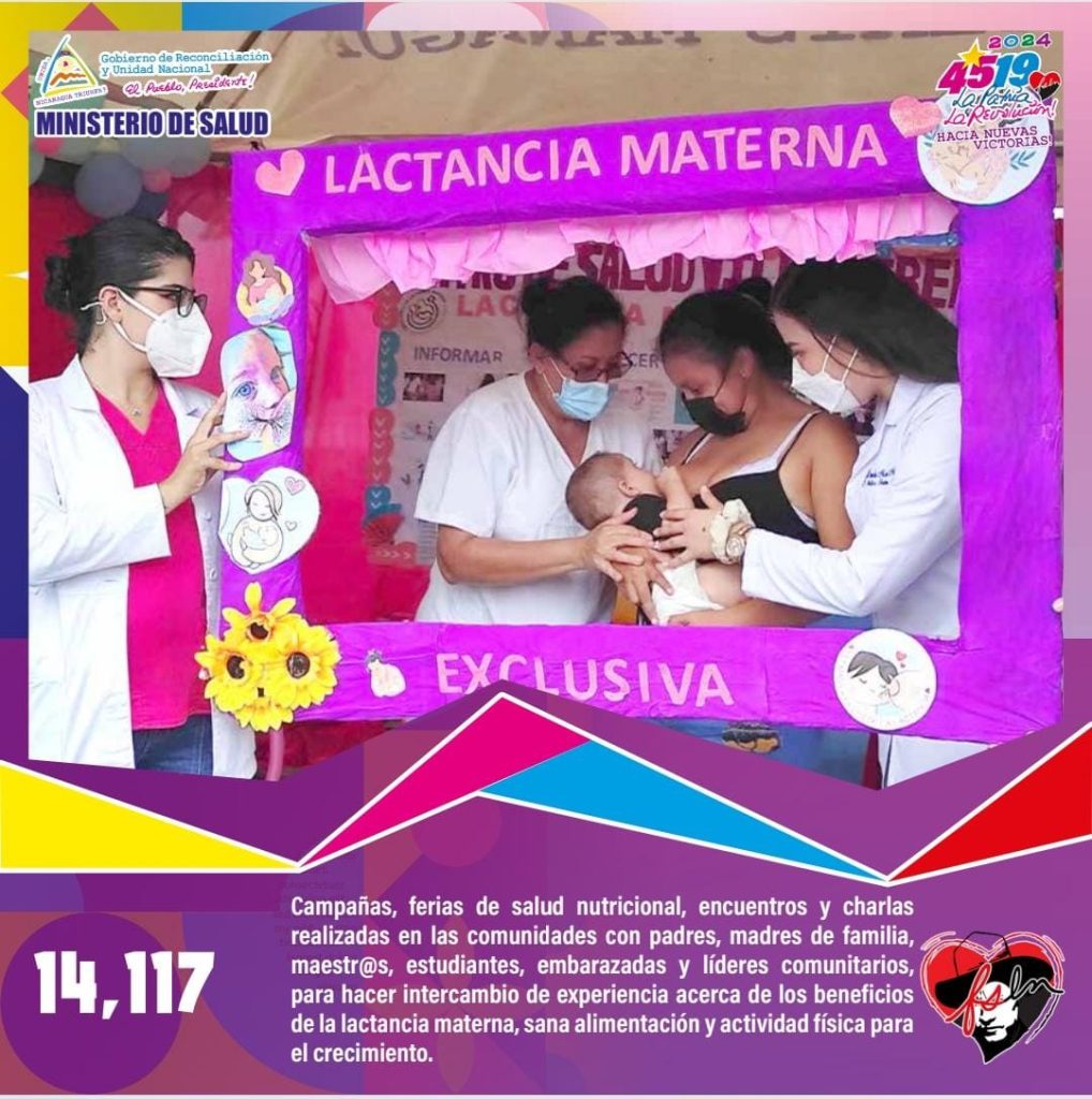 - 14,117 Campañas, Ferias de Salud Nutricional, Encuentros y Charlas realizadas en las comunidades con padres, madres de familia, maestr@s, estudiantes, embarazadas y líderes comunitarios, para hacer intercambio de experiencia acerca de los beneficios de la lactancia materna, sana alimentación y actividad física para el crecimiento.