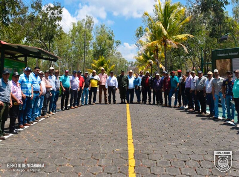 El Ejército de Nicaragua consecuente con el lema de que “Somos el Pueblo mismo uniformado trabajando en su propio beneficio”, el 11 de marzo de 2024, a través del jefe del 6 Comando Militar Regional, Coronel Inf. DEM Osmín Edgardo García, participó en reuniones con representantes del sector ganadero de los diferentes municipios de Matagalpa, Jinotega y de las regiones autónomas de la Costa Caribe Norte y Sur, con el objetivo de evaluar el desarrollo y cumplimiento del Plan Permanente de Seguridad en el Campo, escuchar sus planteamientos y coordinar aspectos relacionados a la seguridad en el campo, lucha contra el abigeato y protección del ambiente y los recursos naturales.