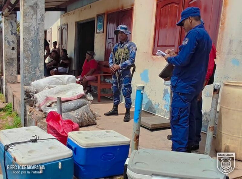 El Ejército de Nicaragua consecuente con el lema de que “Somos el Pueblo mismo uniformado trabajando en su propio beneficio”, el 14 de marzo de 2024, a través de patrulla naval y línea de vigilancia del Distrito Naval Caribe, en las coordenadas φ=14º02’00’’N λ=083º20’010’’W, a 3 millas náuticas al norte de Puerto Cabezas, Región Autónoma de la Costa Caribe Norte, ocupó 1027 libras de pepino de mar de las especies “Petate, Molongo y Lápiz”, 196 libras caracol rosado, 59 libras de langosta y 21 libras de aletas de tortugas, a los ciudadanos Remy Abelardo Thomas Gostas de 48 años de edad e Ismael Ceferino Peralta Lino de 23 años de edad, los que las trasladaban de manera ilegal a bordo de la embarcación tipo panga de nombres “Akira”, violentando las regulaciones establecidas en el país.
