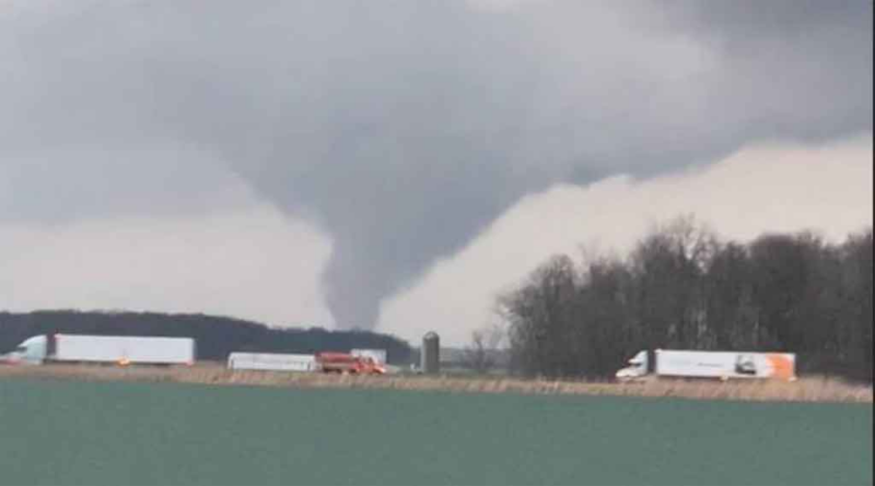 Además de Indiana, el Servicio Meteorológico Nacional (NWS, por sus siglas en inglés) informó de un tornado muy peligroso en Ohio.