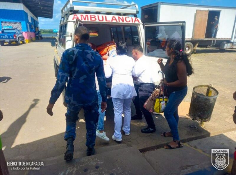 El Ejército de Nicaragua consecuente con el lema de que “ Somos el Pueblo mismo uniformado trabajando en su propio beneficio ” , el 13 de marzo de 2024, a través del Destacamento Naval de Aguas Interiores “Comandante Hilario Sánchez Vásquez”, en coordinación con el Sistema Local de Atención Integral en Salud (SILAIS), realizó traslado vía lacustre de la ciudadana nicaragüense María Auxiliadora García Cerda de 24 años de edad, quien presentó complicaciones de salud, el traslado se realizó desde el archipiélago de Solentiname hacia el puerto del municipio de San Carlos, departamento de Río San Juan.