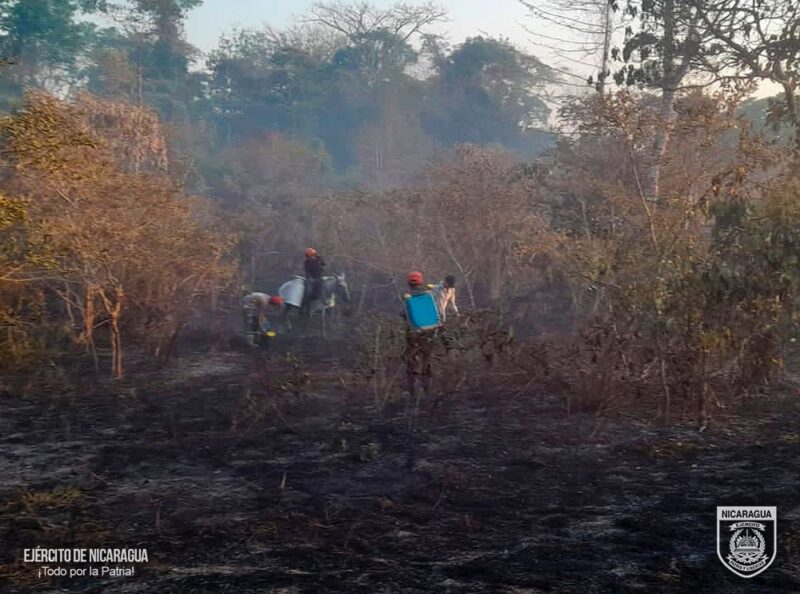 El Ejército de Nicaragua consecuente con el lema de que “Somos el Pueblo mismo uniformado trabajando en su propio beneficio”, el 4 de abril de 2024, a través del 6 Comando Militar Regional, en coordinación con instituciones del Estado, la Brigada Municipal de Rescate (BRIMUR) y comunitarios, participaron en sofocación de incendio forestal, en la comunidad La Sandino, municipio de Río Blanco, departamento de Matagalpa, logrando extinguir un fuego en un área de 30 manzanas de bosques.