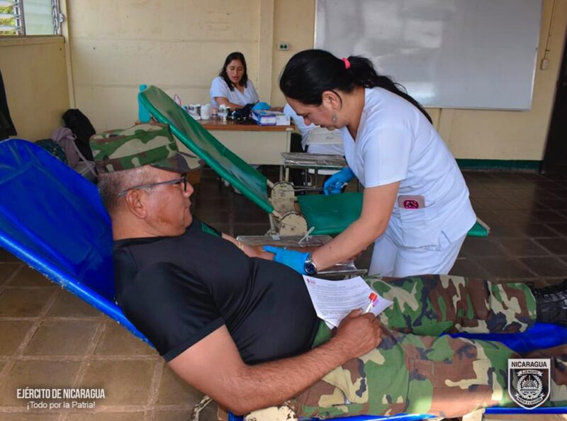 El Ejército de Nicaragua consecuente con el lema de que “Somos el Pueblo mismo uniformado trabajando en su propio beneficio”, el 19 de abril de 2024, a través del 6 Comando Militar Regional, en coordinación con el Banco Regional de Sangre, participó en jornada de donación voluntaria de sangre.
