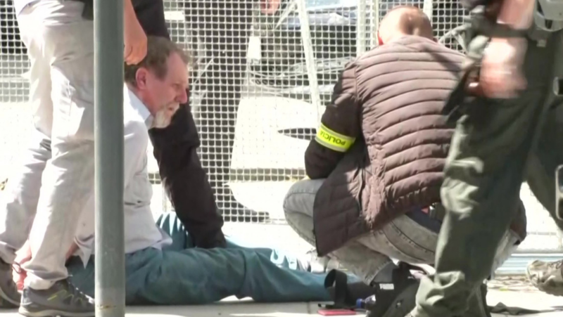 Personal de seguridad detiene a un tirador tras el ataque perpetrado contra el primer ministro de Eslovaquia, Robert Fico, el 15 de mayo de 2024.