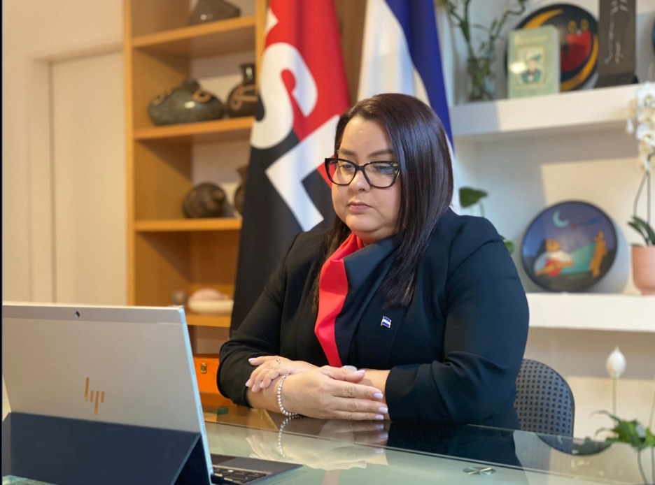 La Compañera Sabra Murillo Centeno, Embajadora de Nicaragua en Austria, transmitió un cordial saludo de parte del Presidente de la República, Comandante Daniel Ortega Saavedra, y de la Vicepresidenta, Compañera Rosario Murillo, a los participantes del evento, al tiempo que compartió sobre la vida y legado de nuestro Héroe Nacional, el General Sandino, destacando su lucha contra el intervencionismo yanki y contra los vende patria, así como por la defensa de la Soberanía y Autodeterminación de nuestra Nicaragua, que hoy en día, gracias a nuestro Buen Gobierno, esta lucha se mantiene vigente.