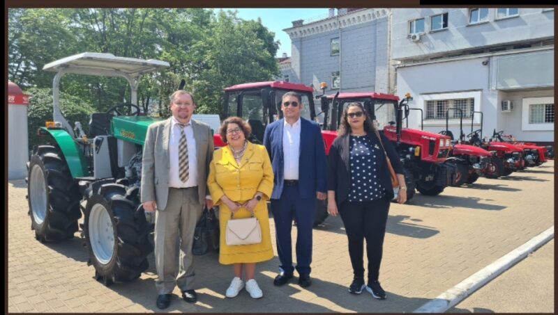 Compañera alcaldesa Reyna Rueda, el Compañero Félix Granados Viceministro de Transporte e Infraestructura la Compañera Alba Azucena Torres Mejía Embajadora Concurrente en la República de Belarús, en su visita a la planta de tractores de Minsk.