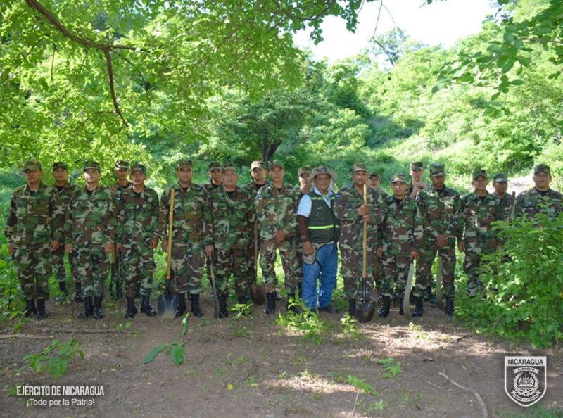 El Ejército de Nicaragua realizó una jornada ecológica para posterior reforestación, en la Reserva de la laguna de Nejapa, municipio de Managua, garantizando espacios limpios y reforestados como parte de su compromiso con el Pueblo de Nicaragua