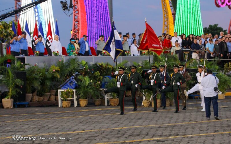 El Presidente de la República, Comandante Daniel Ortega Saavedra, y la Vicepresidenta compañera Rosario Murillo, encabezaron este lunes 2 de septiembre, el acto central del 45 aniversario de la fundación del Ejército de Nicaragua en la Plaza la Fé «San Juan Pablo II».