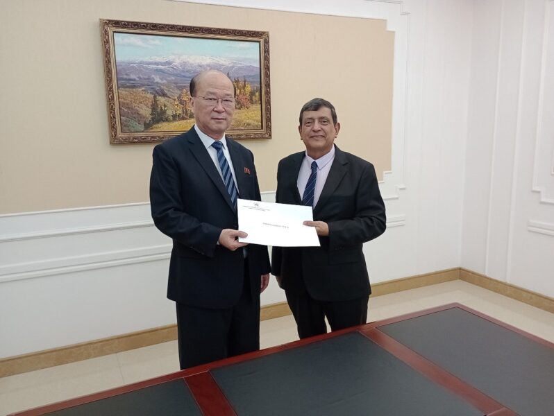 Expresó el Vicecanciller Ra Yun Bak, que entregarán la Misiva al Mariscal Kim Jong Un, Presidente de la República Popular Democrática de Corea, quien muestra gran interés en fortalecer las relaciones entre nuestros dos Países, los que compartimos una causa de lucha común contra el Imperialismo.