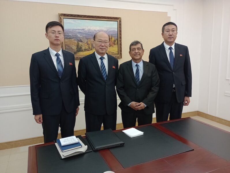 El Compañero Manuel Modesto Munguía Martínez, Embajador de Nicaragua en la República Popular Democrática de Corea, participó en un importante encuentro con la Cancillería de este hermano País, donde se abordaron temas para fortalecer las rutas de Cooperación e Intercambio entre ambas Naciones.