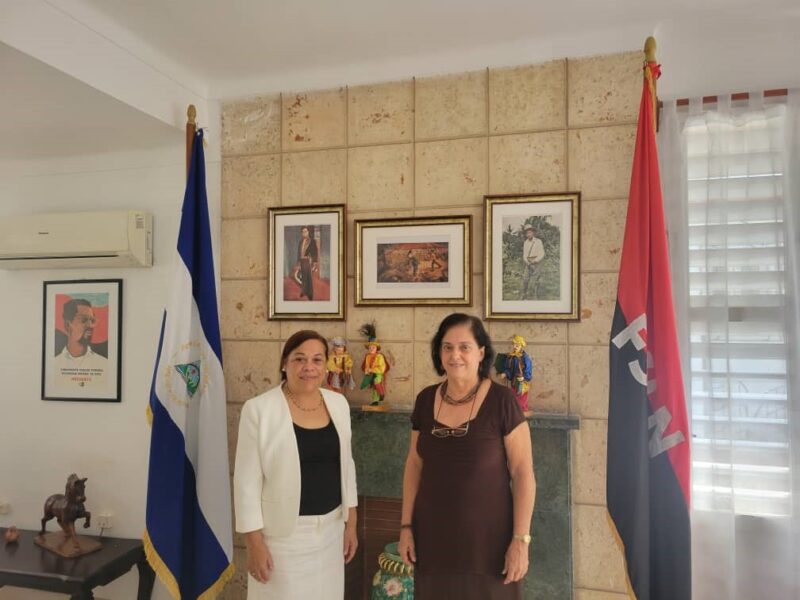 Durante el Encuentro, la también ex-Directora y actualmente Asesora de la Revista Revolución y Cultura, y Miembro de la Unión de Escritores y Artistas de Cuba (UNEAC) y de la Unión de Periodistas de Cuba (UPEC), declaró a nuestra Embajadora su admiración y pasión por la Obra de nuestro Poeta Universal y su Amor por la Nicaragua Libre, surgido de su visita en los años ochenta a la Patria de Darío, como parte de la Delegación cubana que participó en el Primer Festival Internacional del Libro, donde tuvo la oportunidad de conocer a Intelectuales y Escritores nicaragüenses y testimoniar la intrínseca relación entre Cultura y Revolución, y posteriormente su colaboración con Editorial Nueva Nicaragua, experiencias que en sus palabras “le cambiaron su Vida”.