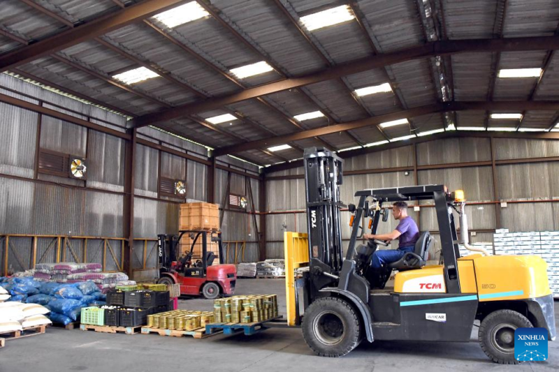 El operario de un montacargas trabaja en el acomodo de mercancías en un almacén de la Empresa de Suministro Marítimo Portuario (Sumarpo) de Cuba, en La Habana, capital de Cuba, el 3 de octubre de 2024. El abastecimiento de insumos y alimentos a puertos, astilleros y buques surtos en aguas cubanas sufrió pérdidas millonarias como consecuencia del bloqueo que desde hace más de 60 años aplica Estados Unidos contra la isla caribeña, según la consideración de expertos. Sumarpo se encarga de suministrar piezas de repuesto, accesorios, lubricantes, tecnología y alimentos que requieren buques, puertos y astilleros. (Xinhua/Joaquín Hernández)