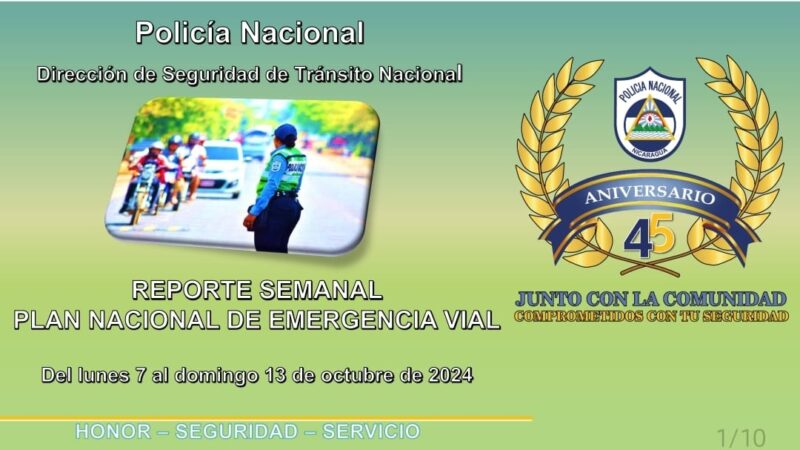 La Policía Nacional de Nicaragua, presentó informe sobre los avances del Plan Nacional de Emergencia Vial, destacando una disminución de muertes y lesiones en accidentes de tránsito en comparación con el 2023. El Comisionado General Jaime Vanegas, Inspector General de la institución, subrayó la importancia de la campaña «Salva tu vida», dirigida a proteger a los motociclistas, y detalló las acciones preventivas y coercitivas realizadas en todo el país, incluidas suspensiones de licencias y detenciones de conductores ebrios.Durante su intervención, el comisionado subrayó la importancia de la campaña «Salva tu vida», la cual está dirigida a reducir la mortalidad de motociclistas, un grupo vulnerable que, en palabras del propio presidente Daniel Ortega, se ve afectado por accidentes relacionados con el exceso de velocidad y la conducción bajo los efectos del alcohol. Vanegas hizo un llamado a la población a colaborar con las instituciones y a adoptar una mayor responsabilidad en las vías.Entre las acciones preventivas desarrolladas durante la semana del 7 al 13 de octubre, la Policía Nacional impartió seminarios de educación vial a 19,095 personas, realizó 1,839 visitas casa a casa, y participó en asambleas comunitarias que involucraron a más de 6,000 ciudadanos. Además, se reguló el tránsito en 74 tramos de carretera, en las cercanías de centros educativos y universidades, y se realizaron 4,812 inspecciones mecánicas a vehículos.Resultados de la semanaVanegas informó que durante la última semana se suspendieron 276 licencias de conducir y se detuvo a 96 personas por conducir en estado de ebriedad. En lo que va del año, se han suspendido 35,529 licencias y se ha detenido a 4,992 conductores en estado de ebriedad. En estos casos, la Policía ha entregado a los infractores a sus familias con las debidas advertencias.En cuanto a los accidentes de tránsito, Vanegas destacó una reducción en el número de personas fallecidas y lesionadas en comparación con el mismo periodo de 2023. Hasta el 13 de octubre de 2024, se registraron 742 fallecidos, 21 menos que el año anterior, y 2,199 personas lesionadas, lo que representa una disminución de 155 casos.Pese a los avances, el comisionado reiteró que cada vida perdida en las carreteras representa una tragedia para las familias nicaragüenses, y que la Policía continuará intensificando sus esfuerzos