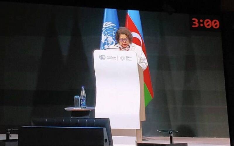 La Embajadora de Nicaragua ante el Gobierno de Azerbaiyán, y Ministra Asesora del Presidente para Políticas y Relaciones Internacionales, explicó a Ministros, Jefes de Delegación y otros Delegados, la posición de Nicaragua en torno a la defensa del Principio de Responsabilidades Comunes pero Diferenciadas y Capacidades Respectivas, y al Principio de Justicia Climática con Reparaciones.