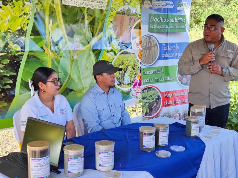 El INTA, a través de un encuentro con productores de los Municipios de Tipitapa y Villa El Carmen realizado en el Centro Nacional de Investigación Agropecuaria General Augusto C. Sandino, CNIA, Managua, presentó nuevo método de fertilización biológica combinado con buenas prácticas de manejo, permitirá a los productores cosechar un promedio entre 40 y 45 quintales por manzana.