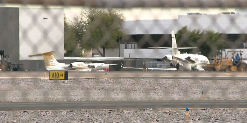«Un Learjet 35A se salió de la pista después de aterrizar y se estrelló contra un avión de negocios Gulfstream G200 en la rampa del aeropuerto municipal de Scottsdale, en Arizona, alrededor de las 14:45 hora local (21:45 GMT) del lunes», informó la Administración Federal de Aviación en un comunicado.