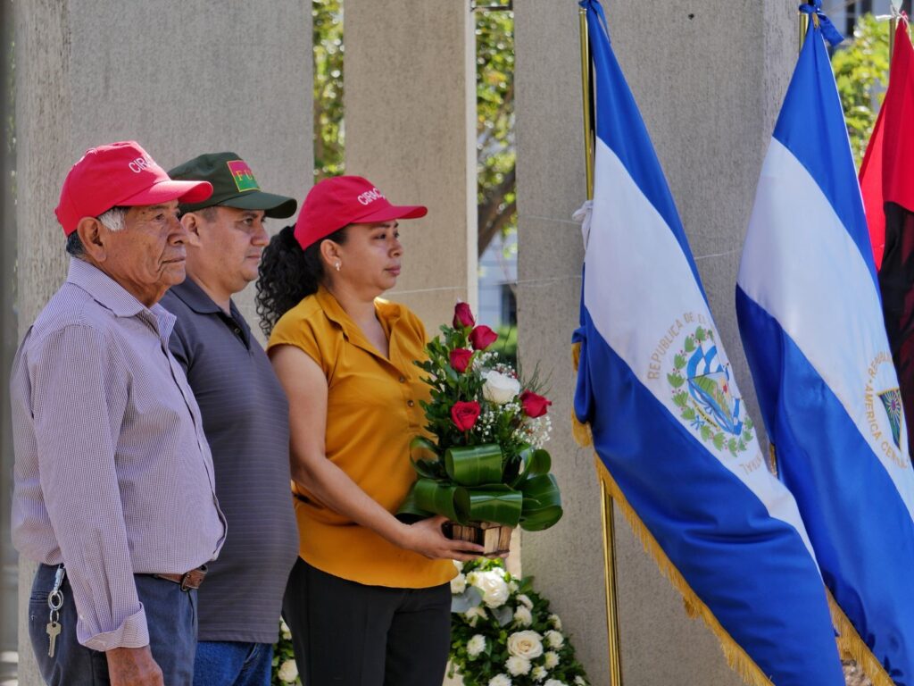 Durante la ceremonia, el Embajador de Nicaragua en El Salvador, Compañero Luis Briones, transmitió a tod@s los presentes el fraterno saludo de los Copresidentes de Nicaragua, Comandante Daniel Ortega y Compañera Rosario Murillo, destacando el compromiso inquebrantable del Pueblo nicaragüense con los ideales de Justicia, Soberanía y Autodeterminación que Sandino defendió con su Vida.